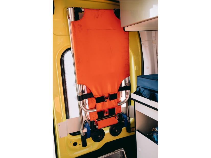 Dzięki podnóżkowi umożliwiają bezpieczniejszy transport pacjenta w pozycji leżącej i zabezpieczają nogi przed zsuwaniem. Idealne dla ZRM oraz OSP.